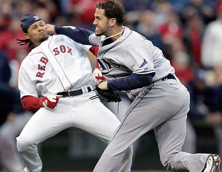 This photo of Coco Crisp and James Shields reminded me of one such Alpha Man and several of the stories he has shared with me over the years. Like the time he was a FedEx delivery guy and got into a fist-a-cuffs with the Coors delivery man behind the Kroger grocery store. Or the time a car full of Latino brothers cut him off causing him to run off the road; when he recovered he caught up with the offending vehicle, pulled the driver out and commenced to open a can of “whoop-ass”. Then there was the time his “20 something” nephew did/said something disrespectful to him and he got him in line, in the backyard wearing a wife-beater and Timbs…in the rain. Oddly enough, I always felt safe with this man whenever I was in his presence and children in need turns this “Johnny Bad Ass” into a marshmallow puff. Don’t judge him either. LOL